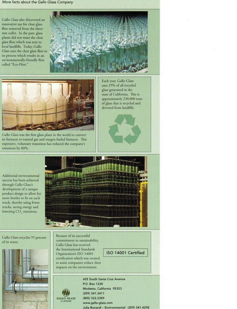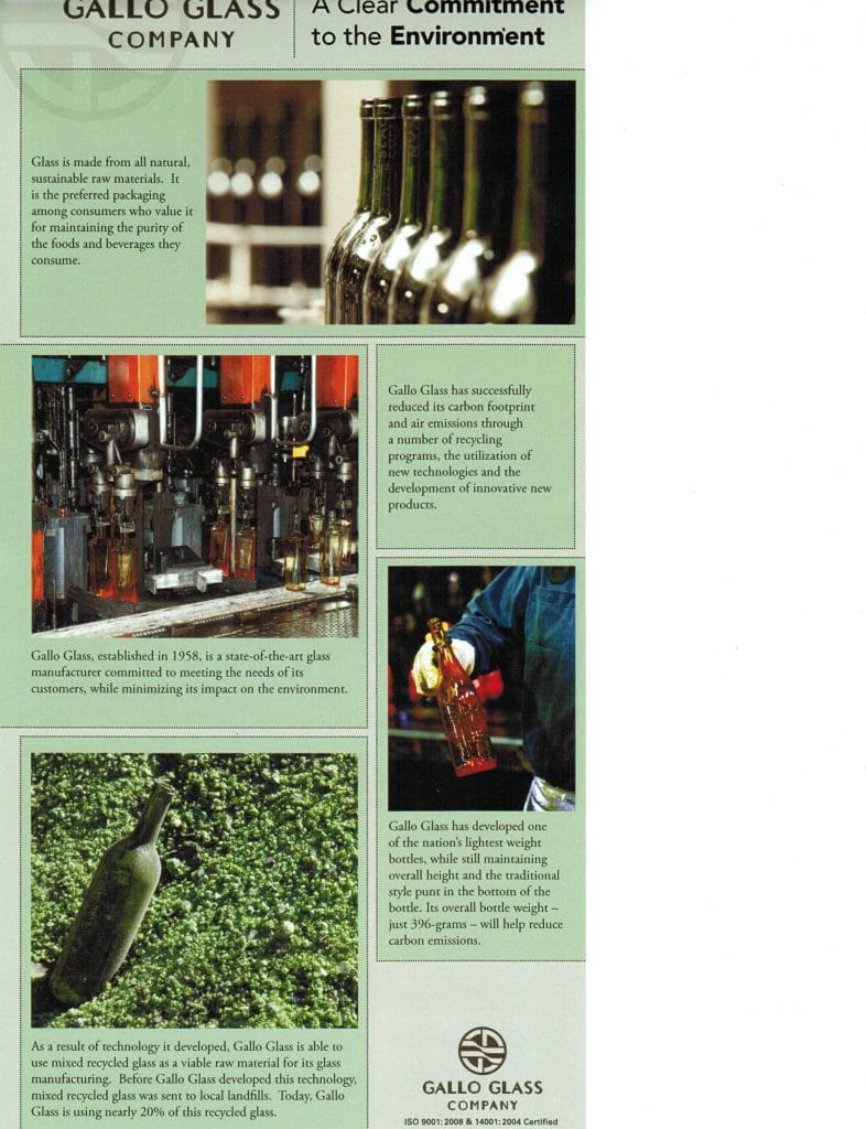 I care about clean processing and corporate transparency because the people I love most are drinking our wine. The wines we will be releasing this September at our Fall Release were bottled in Gallo Glass. See below to learn more about the Gallo Glass Company.